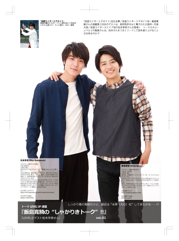YOUマガジン(vol.84)の飯島寛騎&瀬戸利樹 <掲載2ページのみ>を数量限定にてお送りいたします。